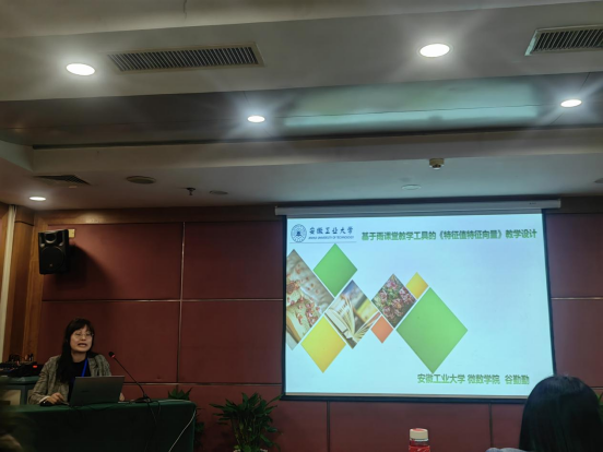 杨二光教授等一行5位老师参加了此次学术年会。27日上午,省数学会理事长叶向东院士作了省数学会年度工作报告并向获得2023年度安徽省青年数学奖的三位老师颁奖。27日下午,在分组报告中,我院谷勤勤老师作了题为“基于雨课堂教学工具的《特征值与特征向量》教学设计”教学类专题报告,介绍了我院自2021年设立基础拔尖人才培养基地以来,数学与应用数学专业基础课程《高等代数》的改革举措以及取得的教学成果,报告内容引起了参会老师们的热烈讨论和一致好评。