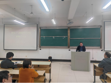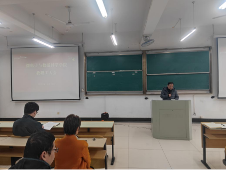 在数理楼403室召开全院教职工大会,学院全体教职工参加会议,会议由学院党委书记汪春胜主持。
