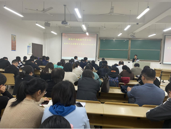 张清指出,党的二十大是党和国家政治生活中的一件大事,党的二十大精神内涵丰富、思想深邃、博大精深,我们要把学习宣传贯彻党的二十大精神作为当前和今后一个时期的首要政治任务,要持续深入学习党的二十大精神,深刻领悟“两个确立”的决定性意义,进一步深化思想认识、凝聚奋斗奋进力量,坚定推动党的二十大决策部署在学院落地生根、开花结果。