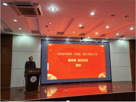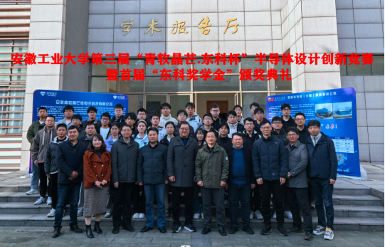 在图书馆大明报告厅举办第三届“青软晶芒-东科杯”半导体设计与创新竞赛暨首届东科奖学金颁奖仪式。东科半导体(安徽)股份有限公司、安徽青软晶芒微电子科技有限公司、讯喆微电子合肥有限公司、南京优奈特信息科技有限公司等单位领导、企业专家以及学院领导班子、部分师生参加。