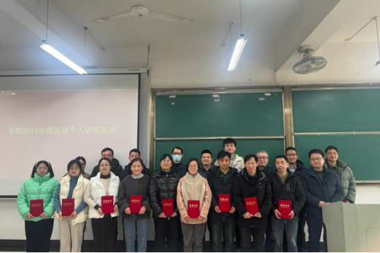 2024年度先进个人,杨二光为获奖人颁发奖状,肯定了他们在过去一年里为学院发展做出的贡献,希望他们在新的一年里继续为学院发展再立新功。