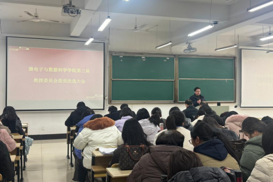 在数理楼403召开了2025年春季学期工作会议暨第三届教授委员会委员改选大会。会议由学院党委书记汪春胜主持,全院教职工参加会议。