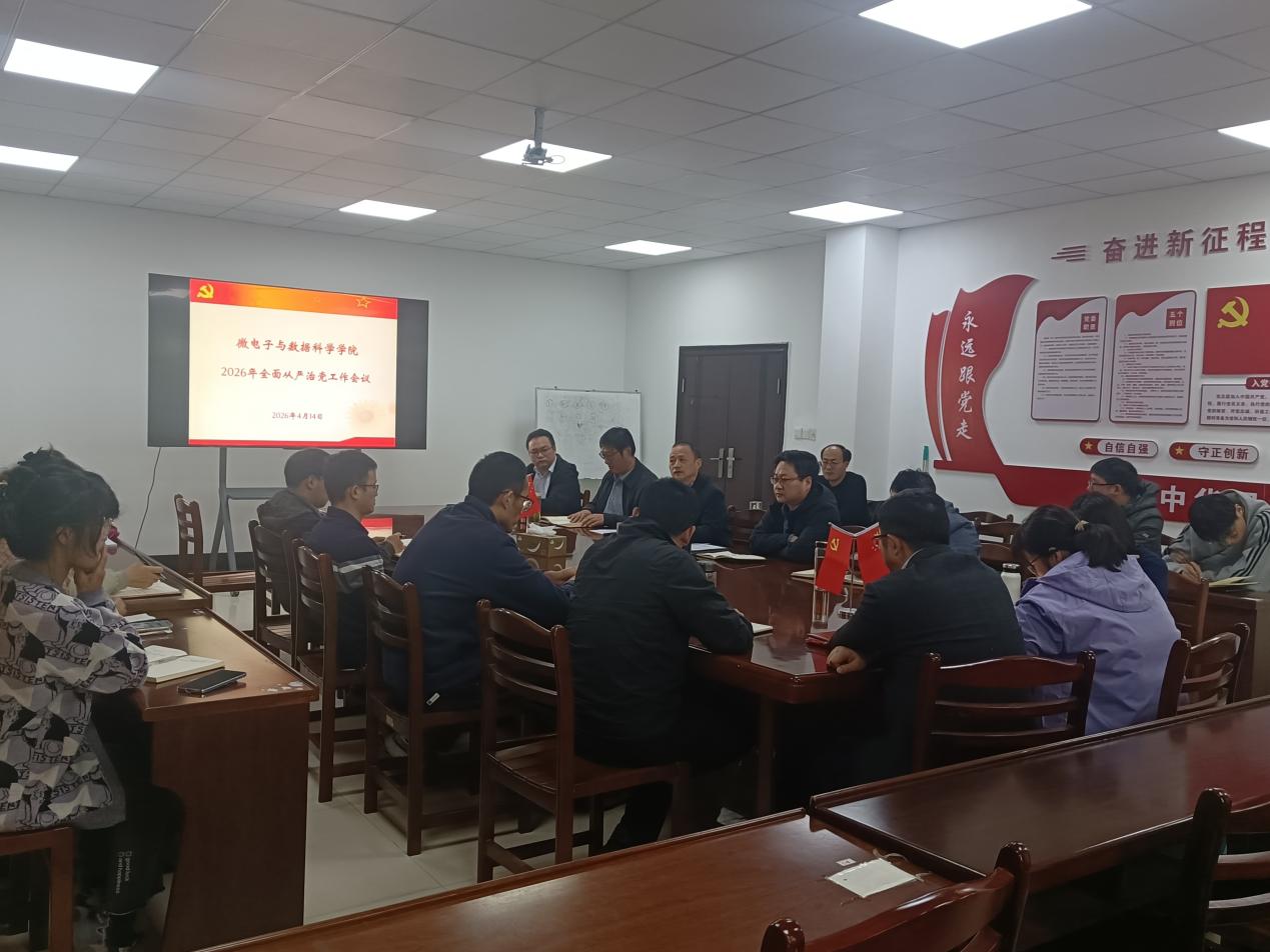 在数理楼306室召开2026年全面从严治党会议,学院党政领导班子成员、党委委员、系部主任、党支部书记参加了会议,会议由汪春胜主持。