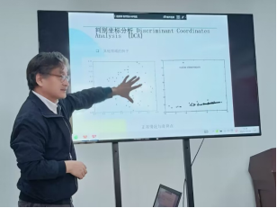 赵明教授针对复杂的国际商务环境,跨境电子商务项目在实施时会出现各种负面因素(如汇率/运费变动、海外政治限制等),从电商发展简介、在研项目、跨境电商管控数据出发,提出一种基于判别坐标分析(DCA)的跨境电子商务风险识别的框架性方法与模型及应用,从政府管理的角度对跨境商务风险进行识别和预测,与相关师生进行了深入讨论和交流。针对《安徽绿色金融发展报告》,彭维才教授在碳中和-碳达峰背景下,做了碳排放约束下资金受限的企业向银行寻求绿色融资问题报告,介绍了混合策略在两种纯策略中占主导地位,而两种纯策略之间的优势取决于市场环境,而混合策略下,绿色融资对可再生资源建设投资的影响受碳排放配额影响等问题,介绍了目前碳配额问题研究的前沿和前景。
