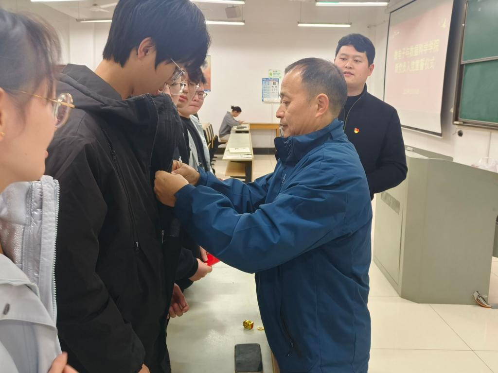 在数理楼403为2025年下半年新发展党员举行入党宣誓仪式。学院党委书记汪春胜、学生支部书记及全体学生党员参加了宣誓仪式。