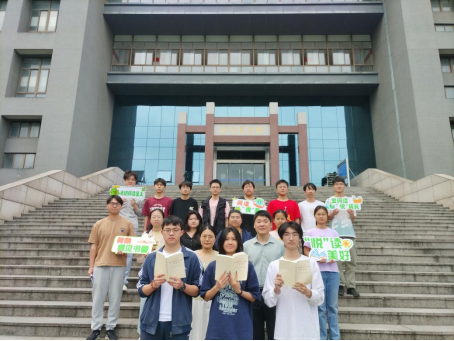 在振华图书馆门前开展“青声接力,共读原著”诵读活动。辅导员王小花、张佳良,学生党员代表、23级部分学生参加。