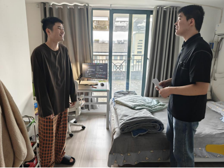 毕业班辅导员张佳良、周文潇走访看望校内外租房学生。