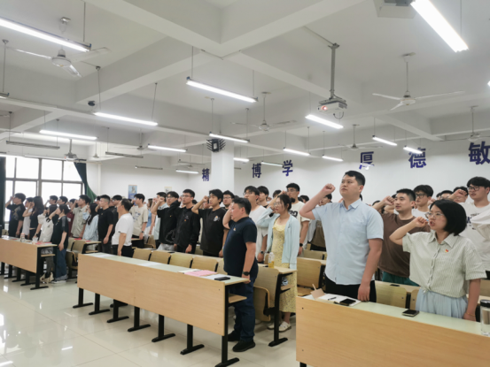 6月16日,av在线看 在数理楼403为2025年上半年新发展党员举行入党宣誓仪式。学院党委书记汪春胜、党委副书记张敏、学生支部书记及全体学生党员参加了宣誓仪式。