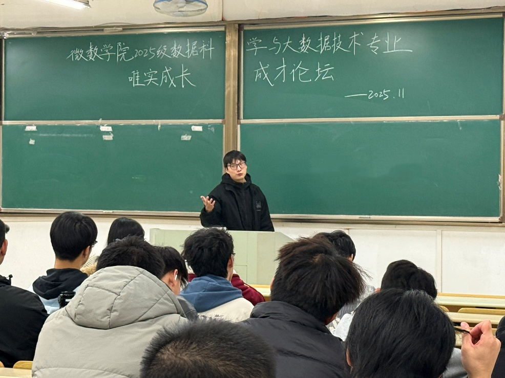 关工委联合学生工作办公室举办“唯实”学生成长成才论坛(第七期)。本次论坛邀请2022级数据科学与大数据技术专业优秀学子祖昂、赵泽洋担任主讲人,2025级大数据专业新生全程参与,辅导员周文潇主持。
